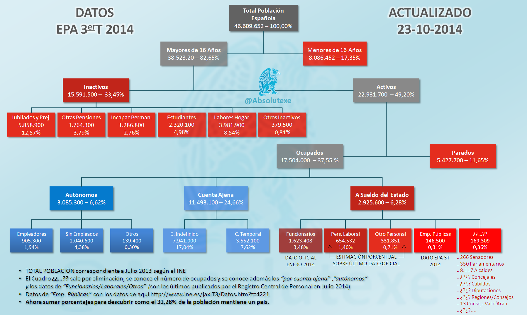 Organigrama de la Estructura de Población Española según la EPA del Tercer Trimestre de 2014.