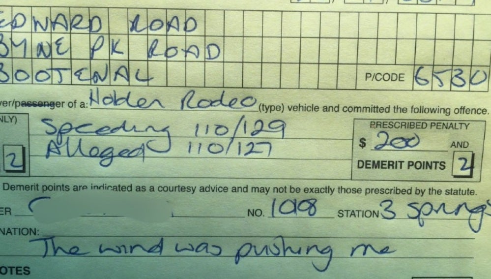 "El viento me empujaba", la excusa de una conductora tras ser multada por exceso de velocidad