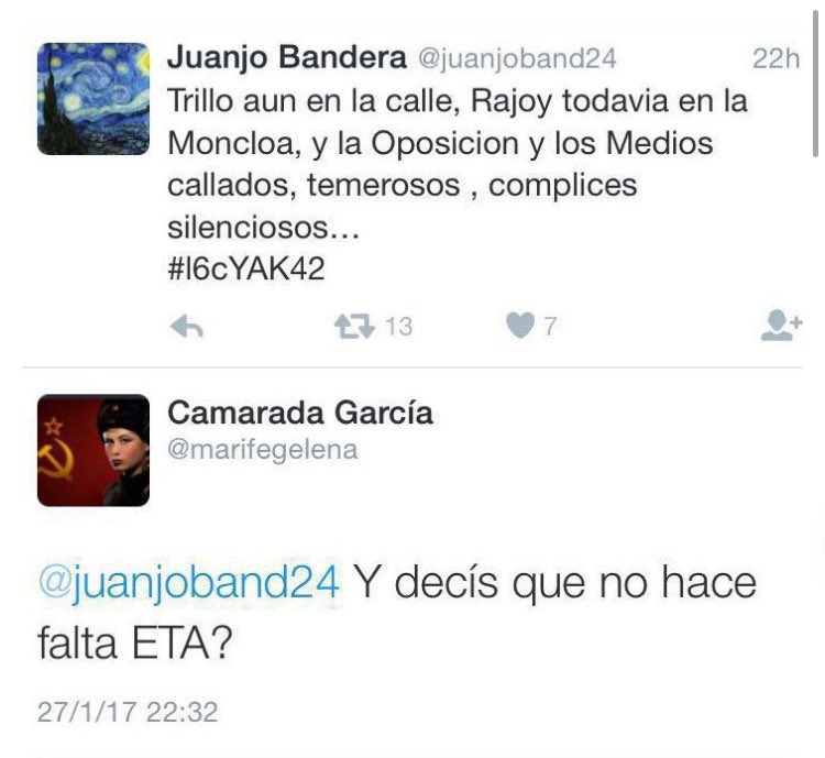 Una dirigente de IU escribe en Twitter que hace falta ETA para frenar a Rajoy