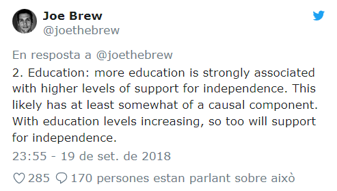 2. A mayor nivel educativo, mayor apoyo a la independencia.