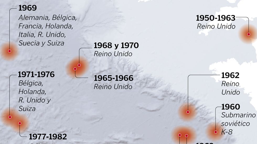 El informe de Alemania también recuerda la presencia del pecio del submarino K-8 en el centro del golfo de Vizcaya, a la altura de Cantabria, que se perdió tras un incendio a bordo. Murieron 52 tripulantes. Se encuentra a unos 4.500 metros de profundidad con dos reactores nucleares.