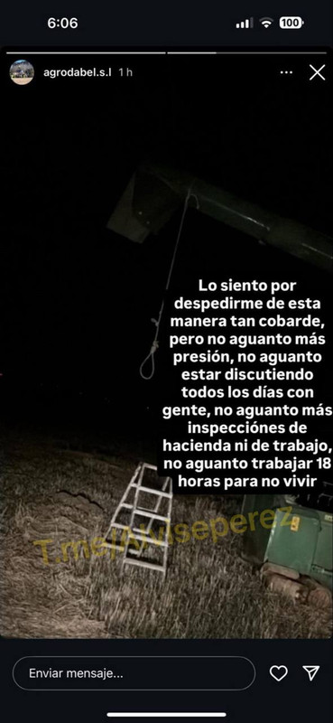 pues si: se muere después de meses de violencia institucional y de bullying (ya hemos comentado muchas veces que éste narco-estado "feminista" debe tener la mayor proporción de psicópatas).. resumiendo: una pandilla de "balientes" le detuvieron, le multaron, le hicieron varias inspecciones de trabajo, le quitaron la PAC, el Gobierno le amenazó, los "medyos de hinformazión" del equipo de opinión sincronizada le criminalizaron… y lo hundieron económicamente y moralmente.. y "se muere" (sic)..